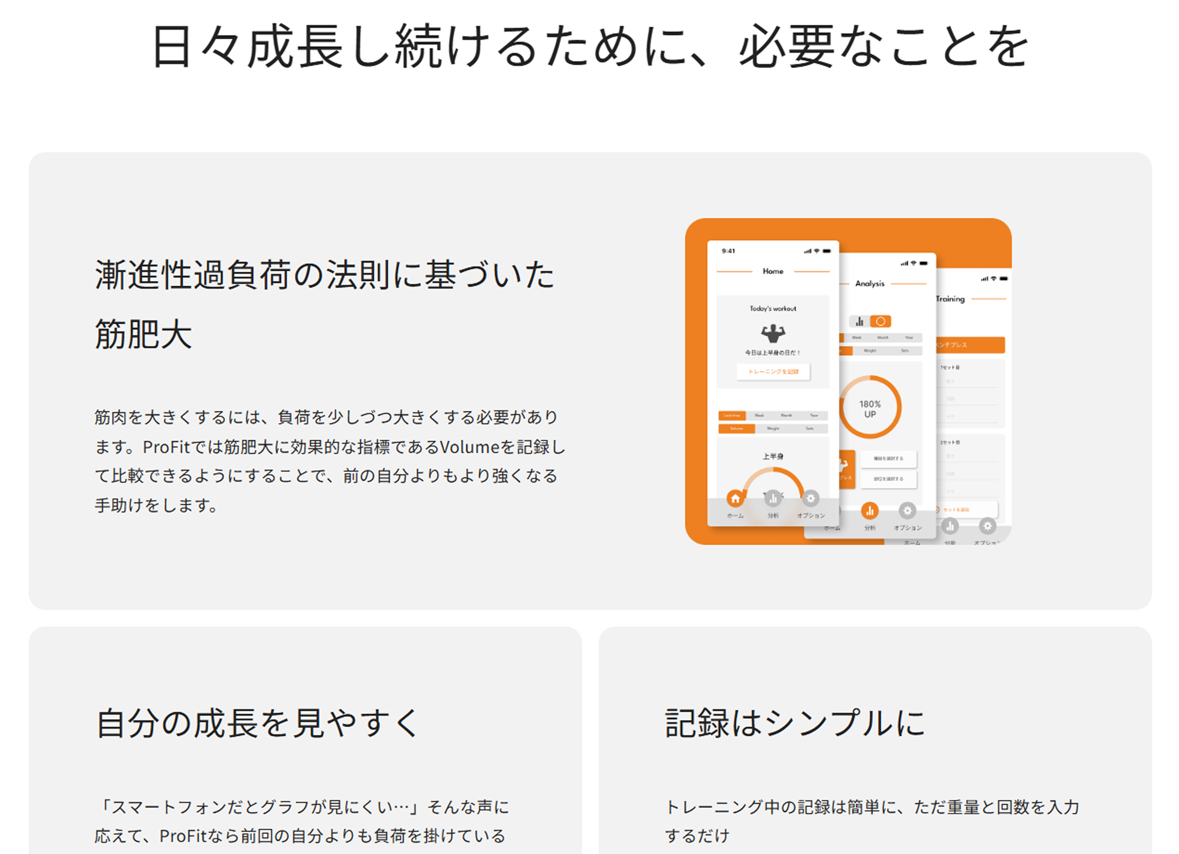筋肥大目的の自分の成長がみやすいアプリをデザインした後に、このアプリのLPサイトを作成しました。多い情報をシンプルに伝えるにはどうしたら良いか?をテーマに制作を進めました。