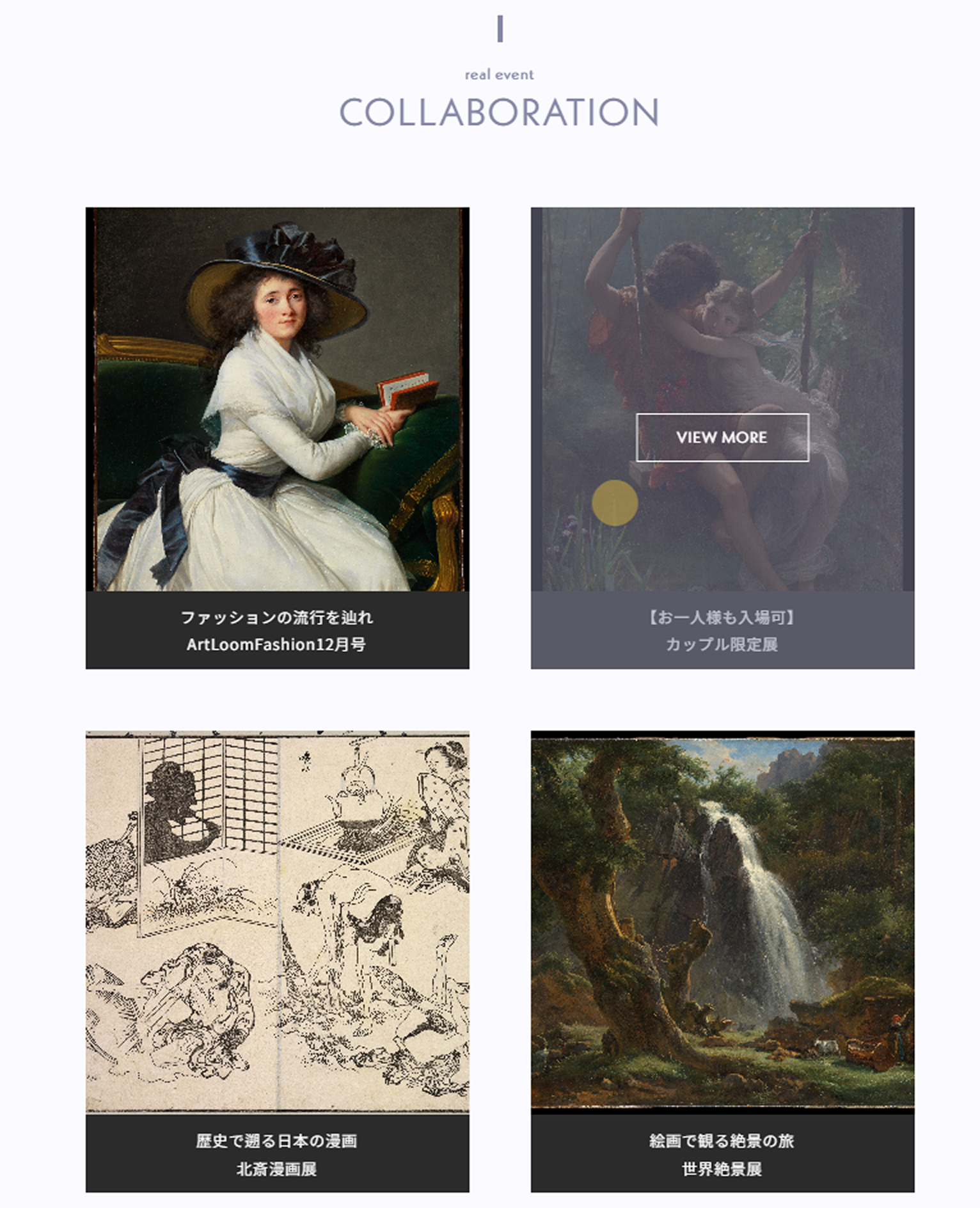 認知拡大のもと最終的に美術館に来場いただくのが目的です。ですが、美術館に対して堅苦しく敷居が高く感じられることが課題でした。そこで、その敷居を下げる役割としてWEBサイトを設立しました。サイト全体では白や淡い色で構成することで、北欧家具のような居心地の良いイメージを持たせて、堅苦しさを排除しています。親しみやすさを出しつつも、淡い紫をメインカラーとすることで神秘性や格式高さを保ち、美術館らしさと両立するようにデザインしました。